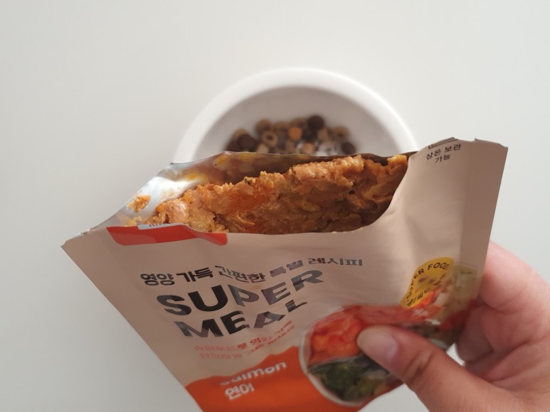 4각으로 밀봉되어 있어 냉동과 해동이 필요 없이 바로 먹을 수 있는 슈퍼밀입니다.