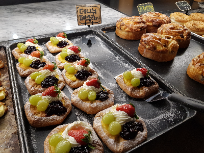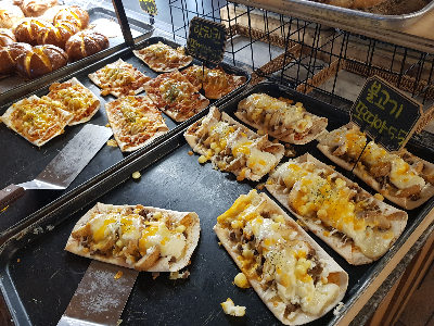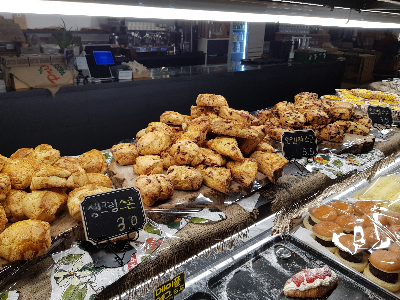 저녁에 방문했을 때 빵 가판대 한쪽이 빵이 없어진 듯 텅 비어 있었다. 그러나 빵의 종류는 많았다. 베이커의 천국입니다.