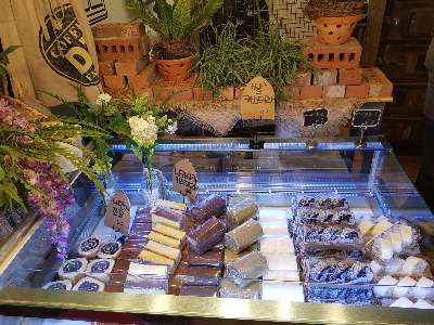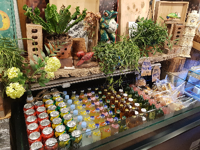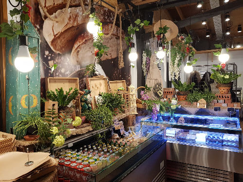 인테리어가 이쁘게 꾸며져 있었어요. 병에 든 음료와 차가운 디저트는 입구 바로 밖에서 이용할 수 있습니다.