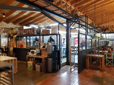 베이커리 카페답게 앉아서 먹을 수 있는 테이블이 많고 이름에서 알 수 있듯이 제빵 공장은 예상되는 공간의 절반을 차지합니다.