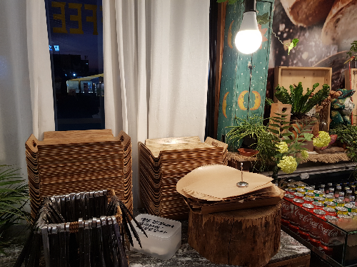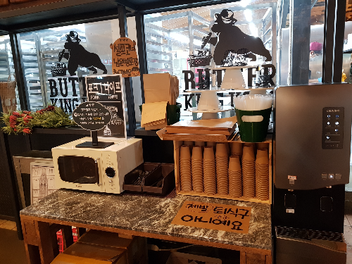 한쪽에는 남은 빵을 포장하거나 데울 수 있는 공간이 있습니다. 정수기도 있어서 물을 마실 수 있어서 좋습니다. 장비가 깔끔합니다.