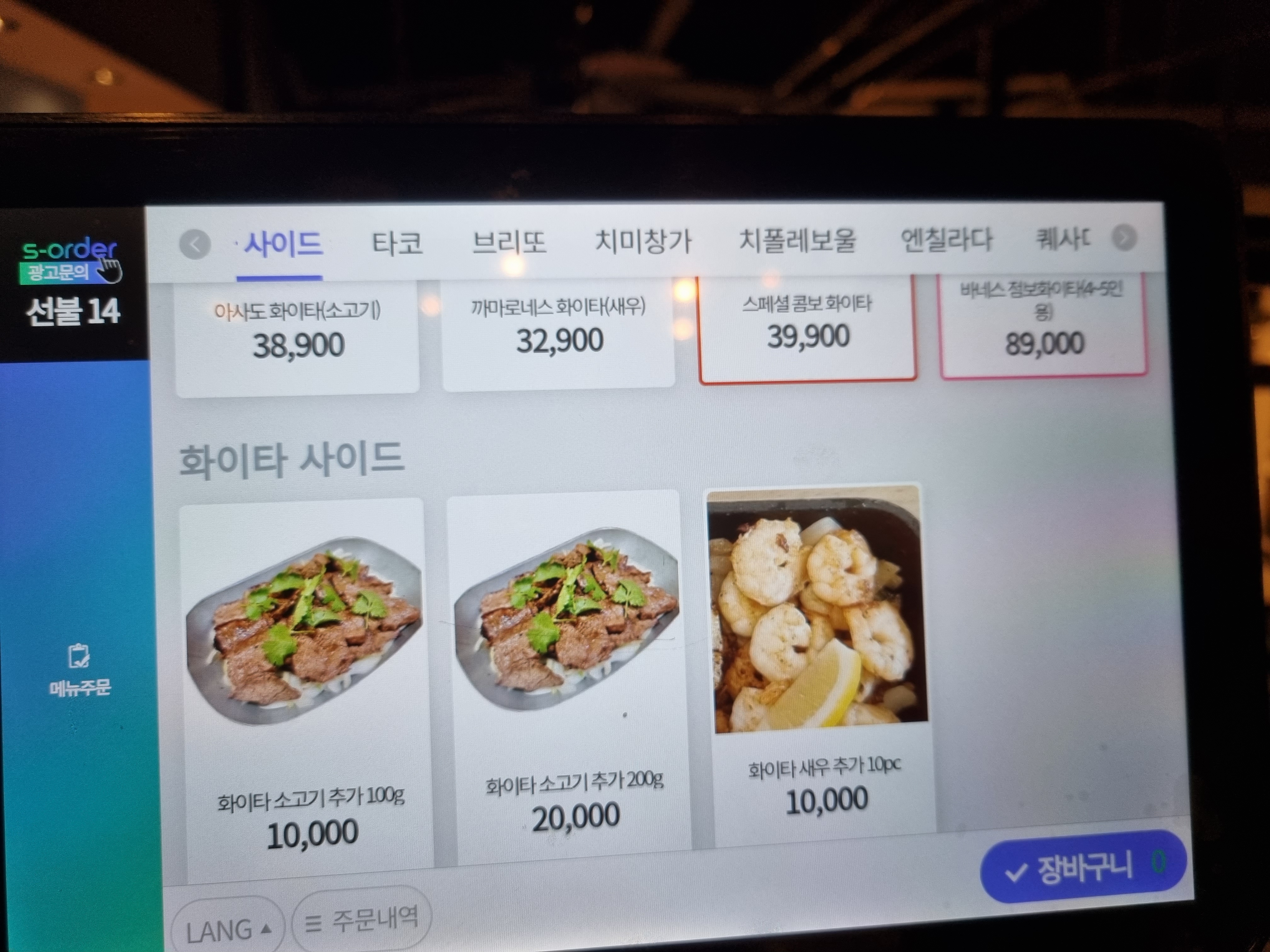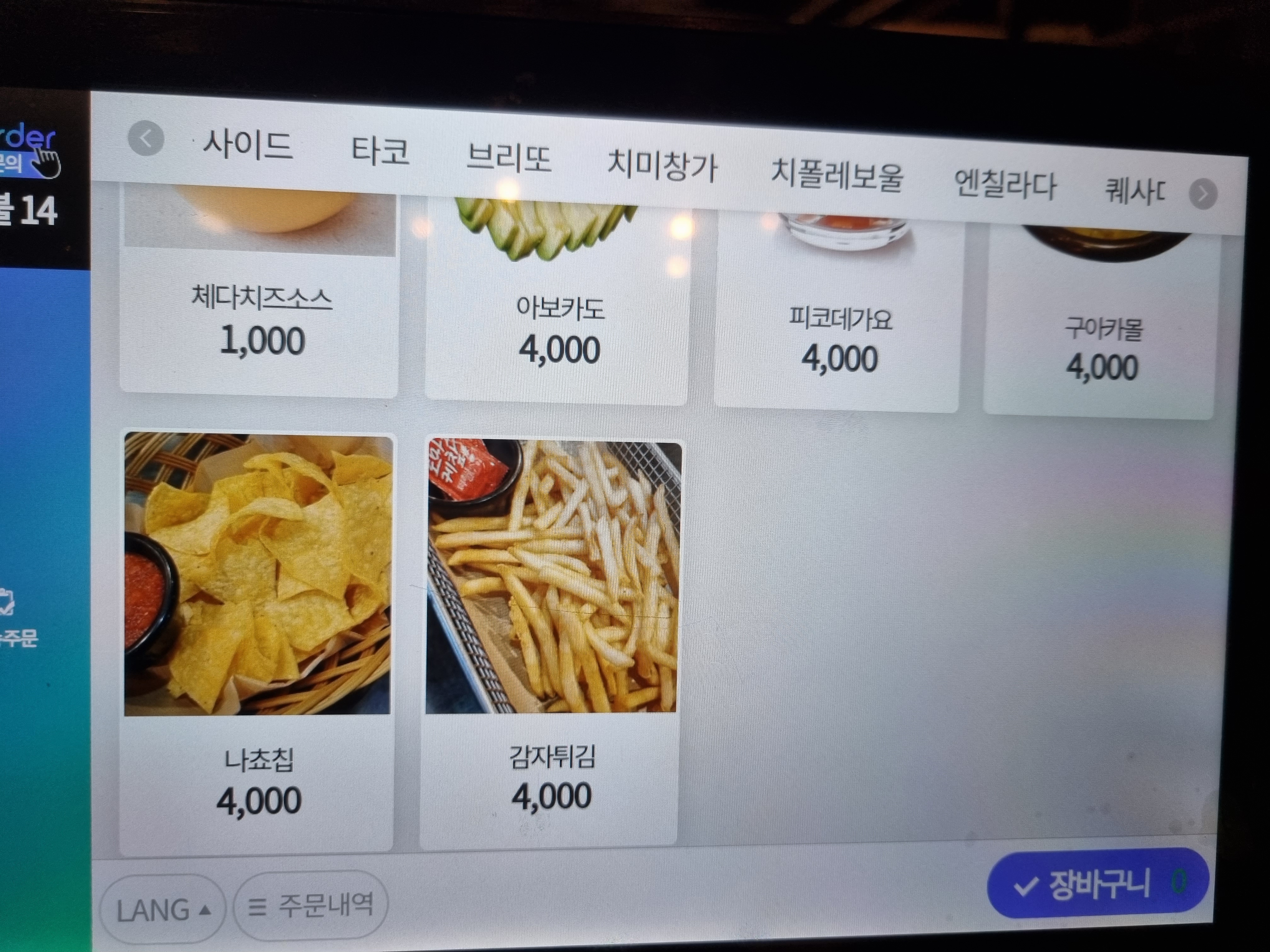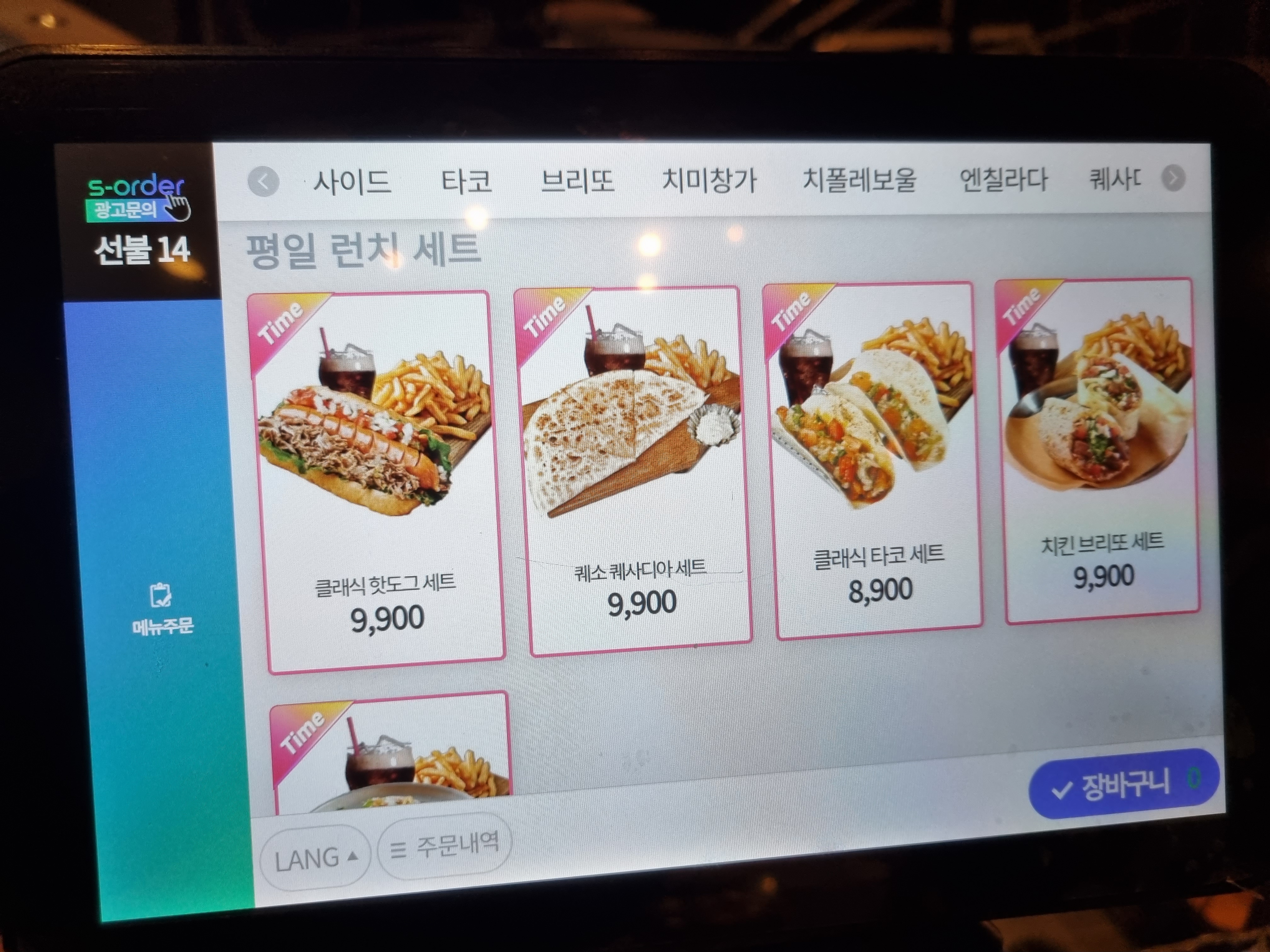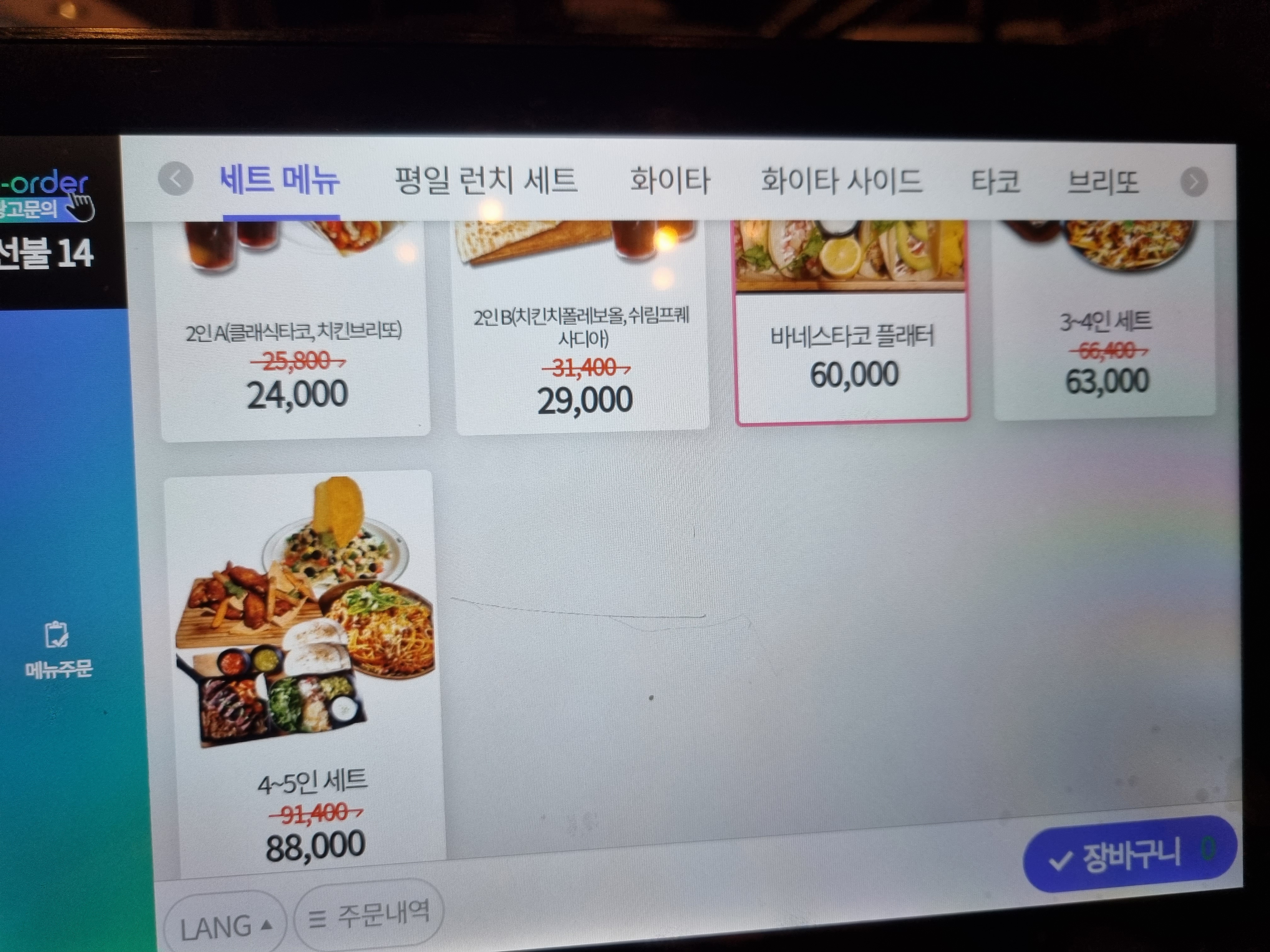 우리는 타코, 브리또, 음료가 포함된 A세트 2인(24,000원)을 주문했다.