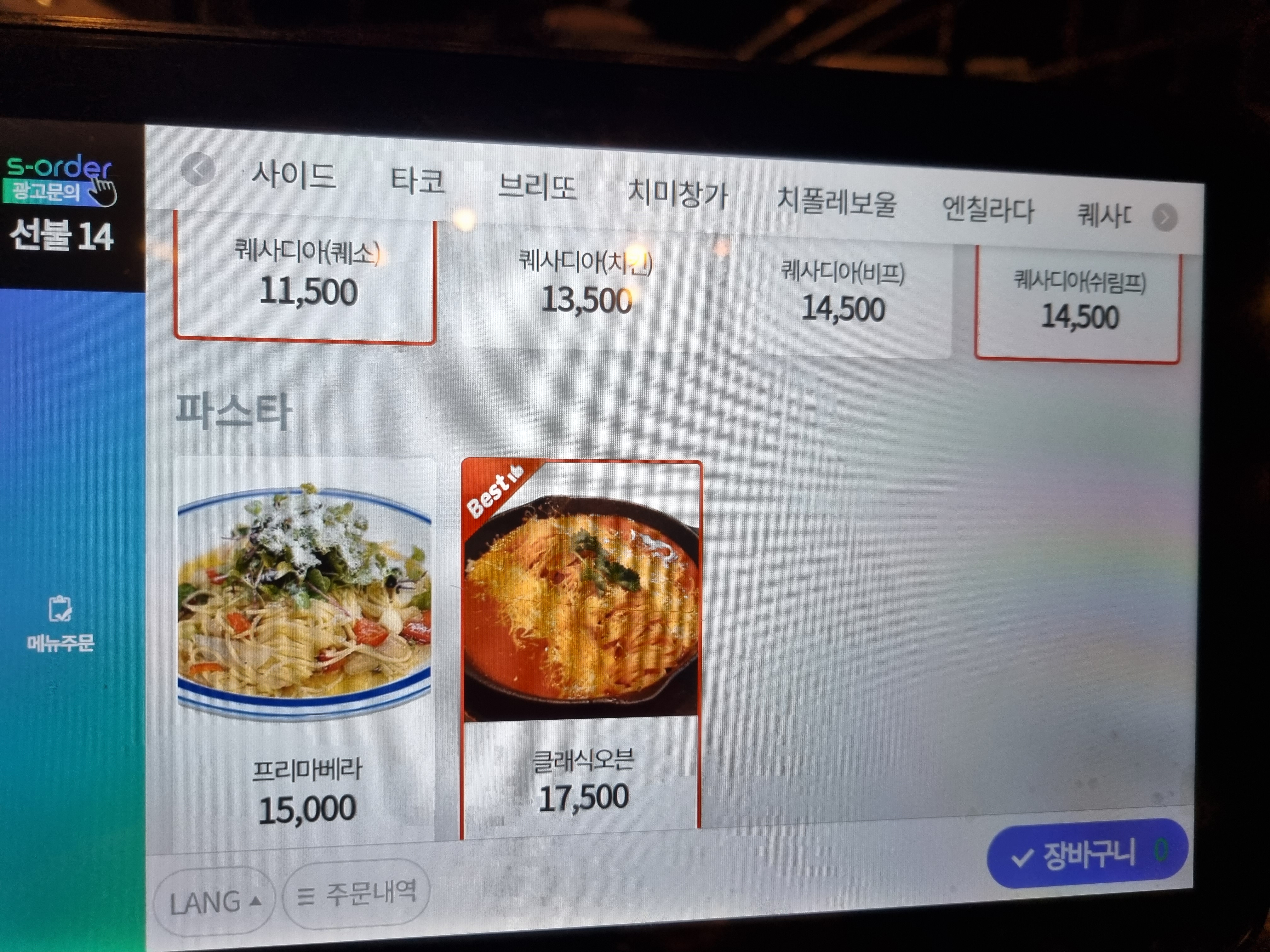 태블릿으로 주문하고 결제하는 선불 시스템입니다.