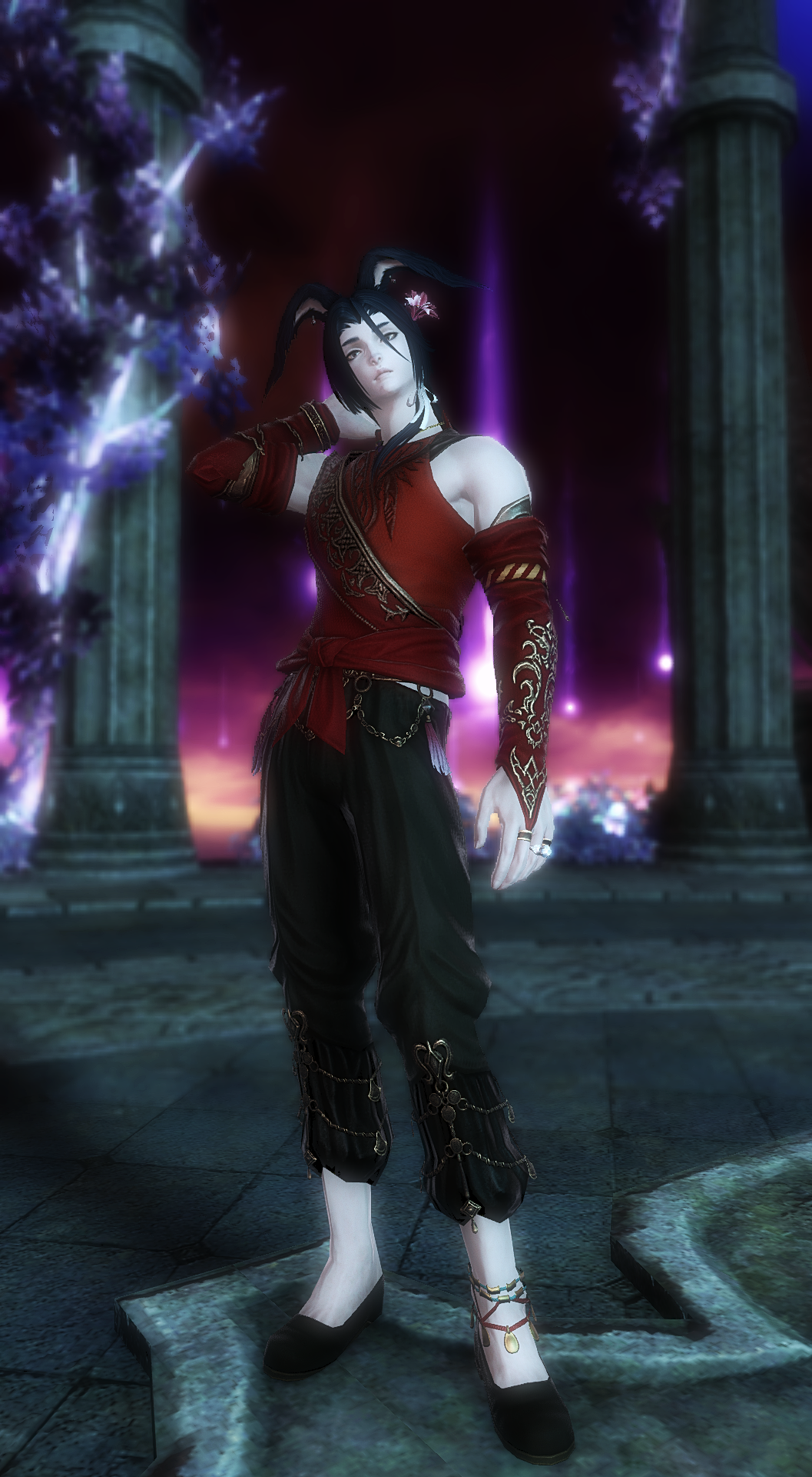 머리: 릴리 헤드드레스(레드) / 상의: 팔라카 게릴라 상의(넥타이 x) / 손: 무술 ver. 신발 (차콜 블랙)